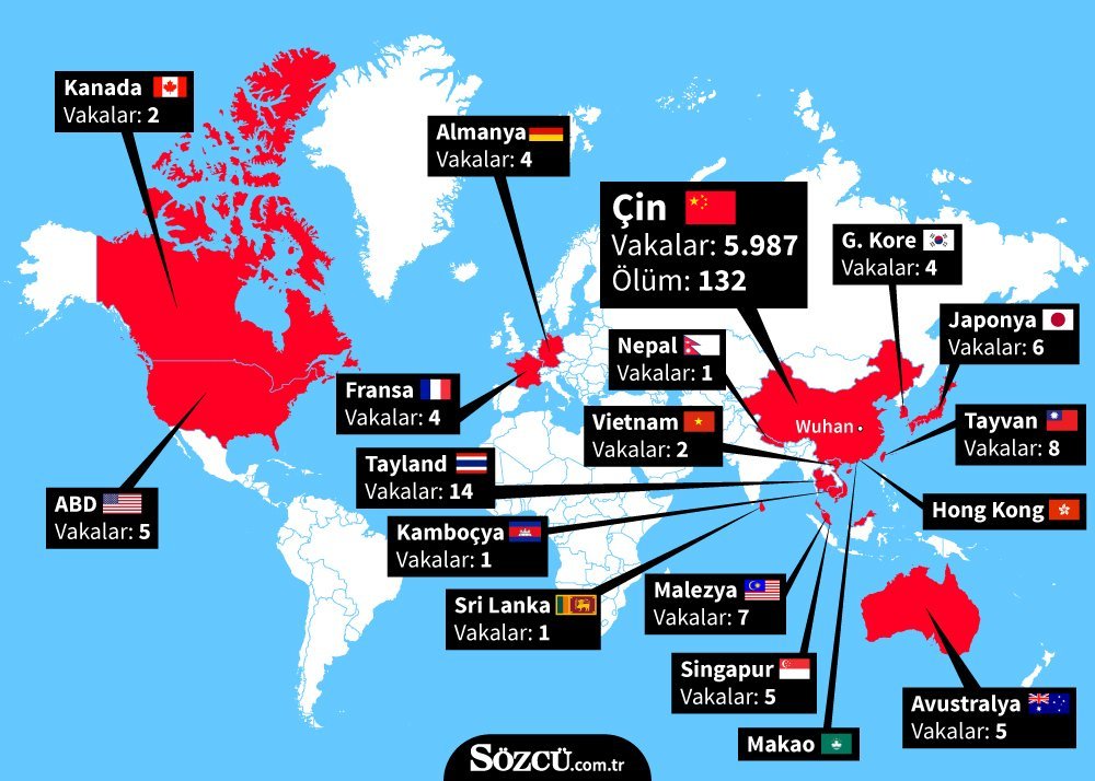 ⏩ DİĞER: Coronavirus görülen ülkelerin yetkili sağlık kurumlarından derlenen veriler: