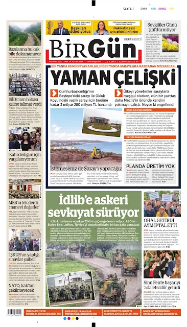 14 Şubat 2020 Cuma Gazete Manşetleri